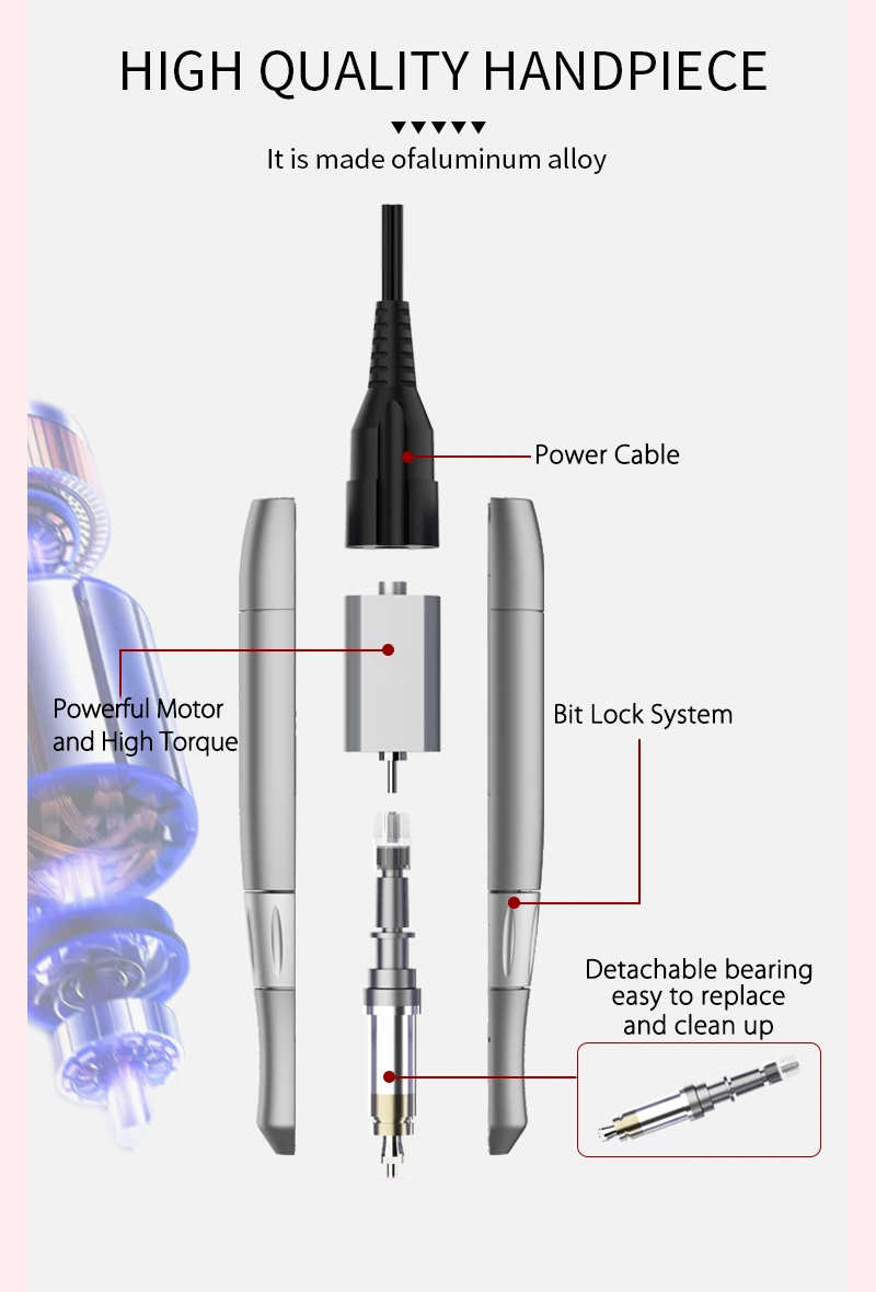 Elektrinis nagų gręžtuvas, nesunku sugadinti rankinį įrankį 65w 35000 aps./min