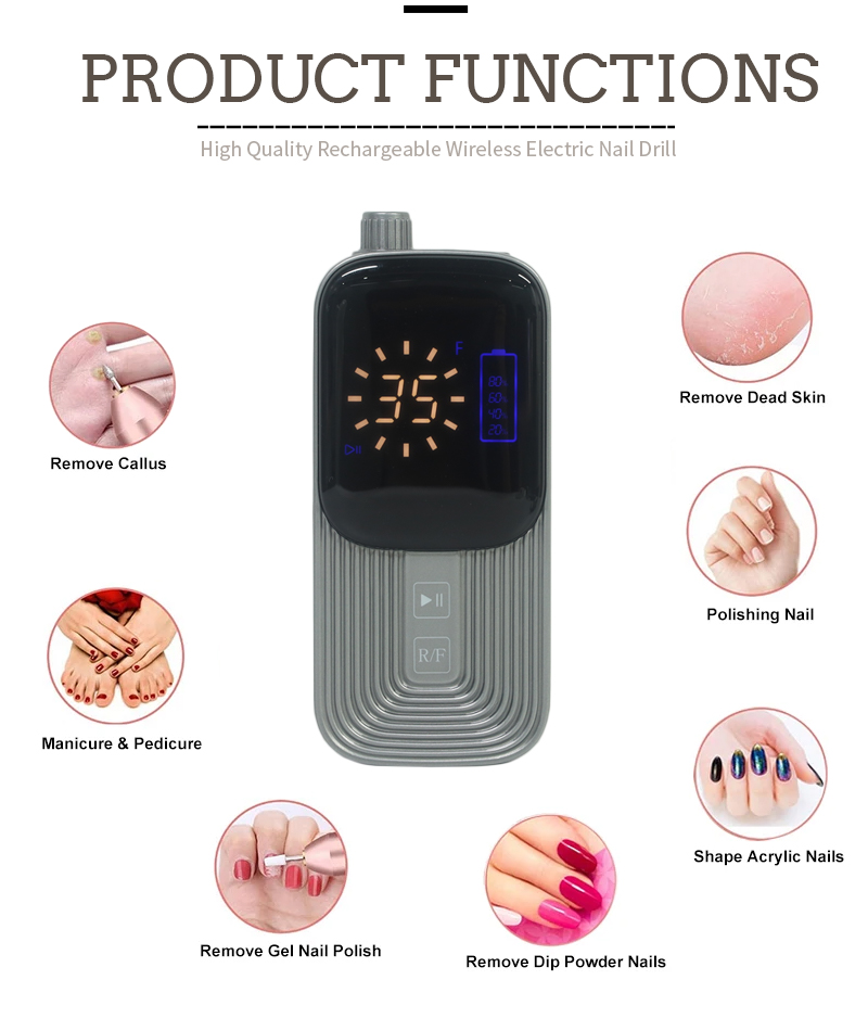 Nešiojamas elektrinis nagų gręžimo rinkinys su galingu 65 W 35 000 aps./min. varikliu