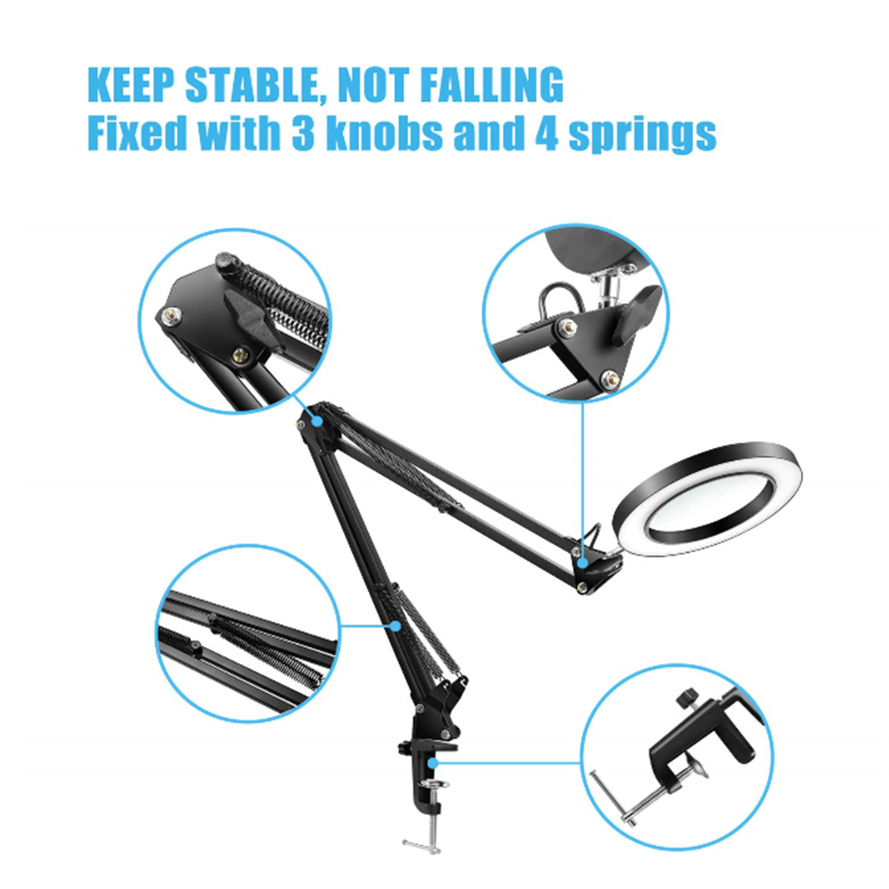 Ši sulankstoma 360 laipsnių besisukanti didinamoji stalinė lempa pasižymi elegantišku ir rafinuotu dizainu. Jo švelni šviesa maloniai apšviečia akis, imituodama švelnią, natūralią aušros šviesą, kad būtų patogus apšvietimas be akinimo. Tinka įvairioms reikmėms, įskaitant tatuiruotes, siuvinėjimą ir nagų dailę.