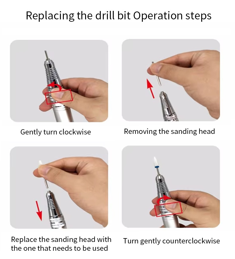 Šis rankinio nagų grąžto ir poliravimo gręžtuvo pakeitimo metodas, tai yra, prijunkite ir ištraukite, lengvas ir patogus, keitimas gali būti naudojamas baigus.