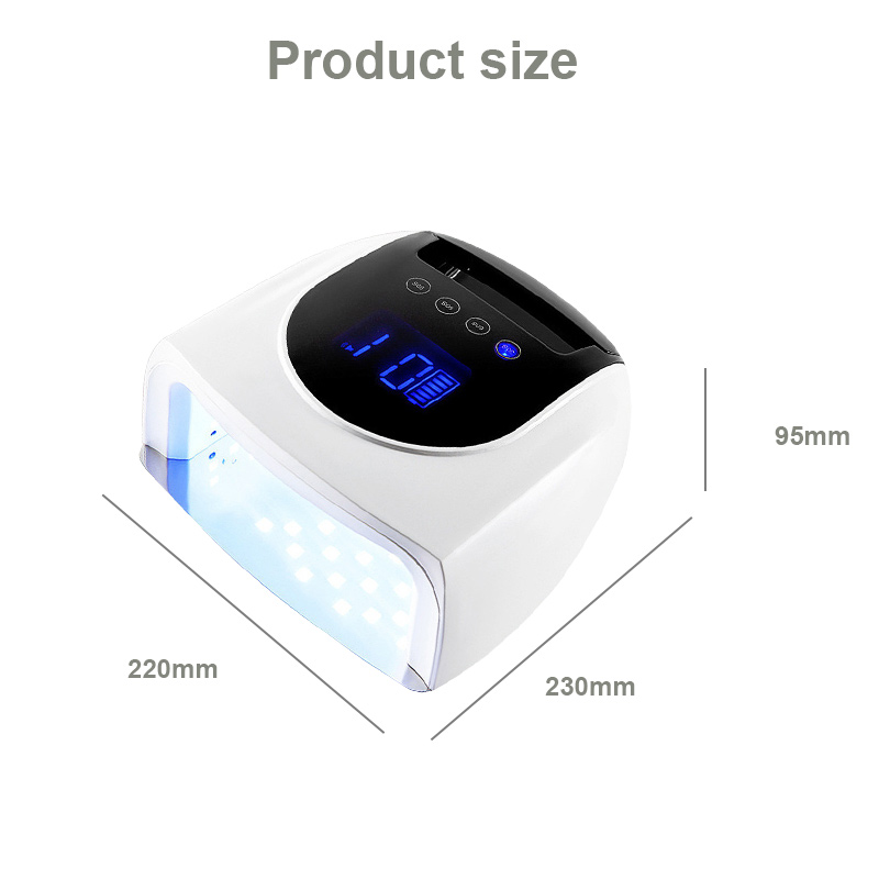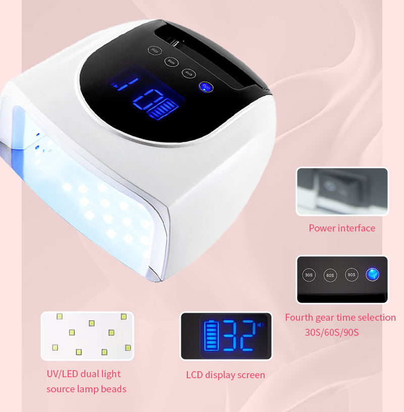 Produktas užtikrina tolygų klijų džiūvimą be susitraukimo. Dvigubi šviesos šaltiniai švelniai šildo, kad nepakeistų rankų spalva ir nepatemptų akys, tinka tiek rankoms, tiek kojoms, o tai užtikrina nepaprastai greitą džiūvimą.