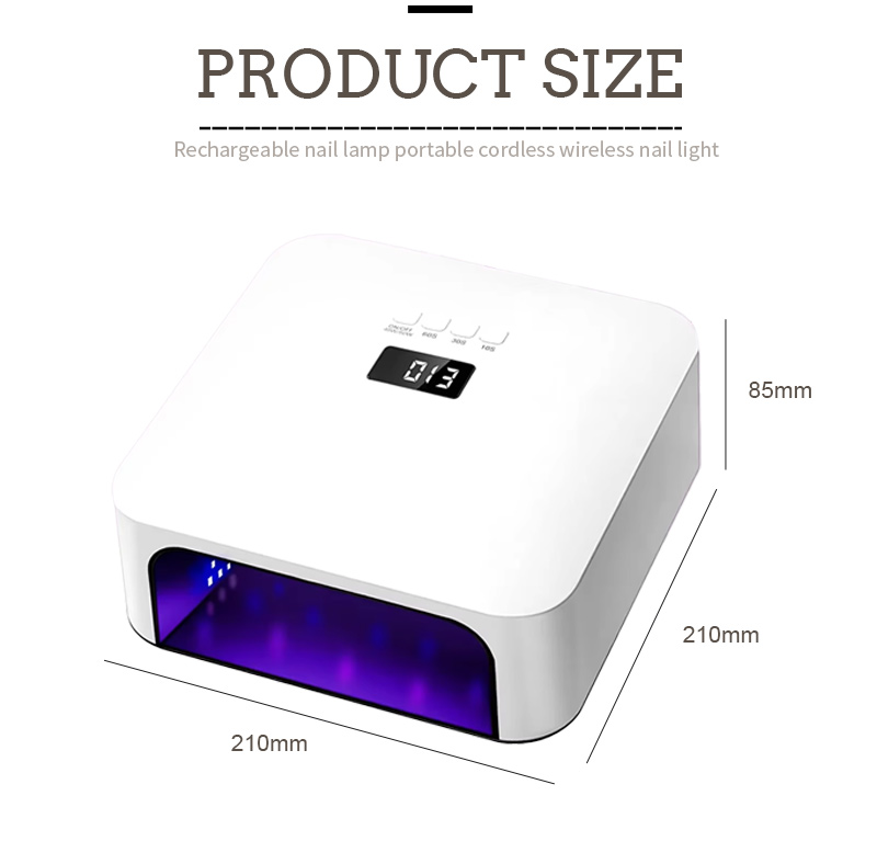 Šios aukštos kokybės greito nagų džiovinimo lempos matmenys yra 210 mm ilgio, 210 mm pločio ir 85 mm aukščio, didelės talpos ir galimybės naudoti tiek rankas, tiek kojas, o tai yra labai patogu.