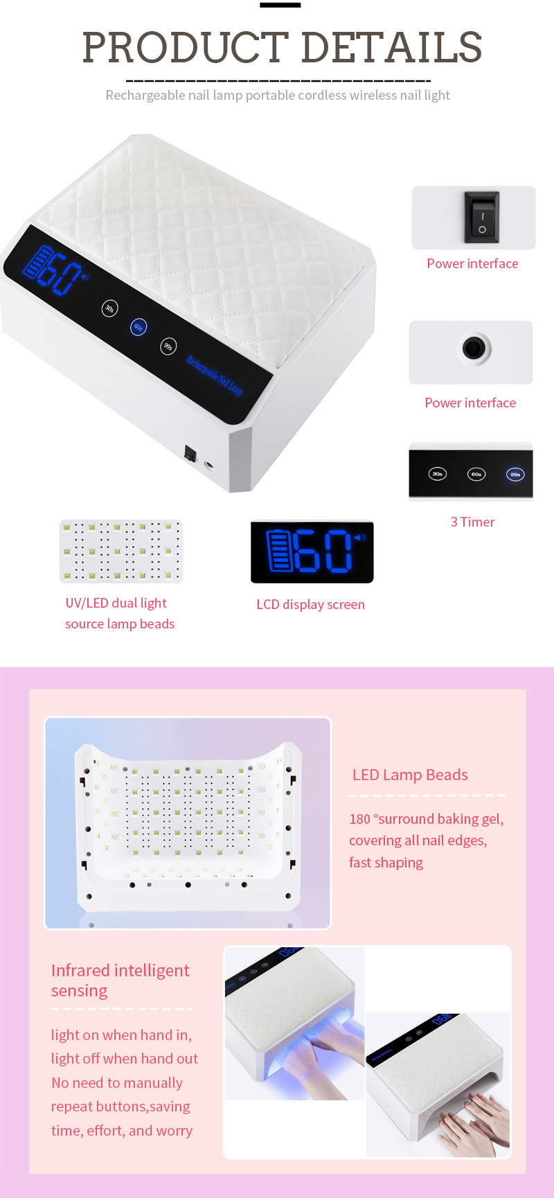 Produktas užtikrina, kad netgi džiovintų be susitraukimo. Jo dvigubi šviesos šaltiniai suteikia švelnų kaitinimą, kad būtų išvengta rankos spalvos ir akių įtempio, tinkamų abiejų rankoms ir kojoms, ir užtikrina nepaprastai greitai džiovinimo rezultatus.