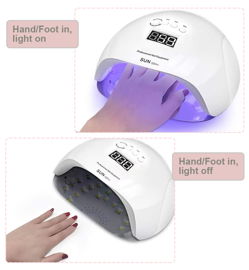 Produktas užtikrina tolygų klijų džiūvimą be susitraukimo. Dvigubi šviesos šaltiniai švelniai šildo, kad nepakeistų rankų spalva ir nepatemptų akys, tinka tiek rankoms, tiek kojoms, o tai užtikrina nepaprastai greitą džiūvimą.