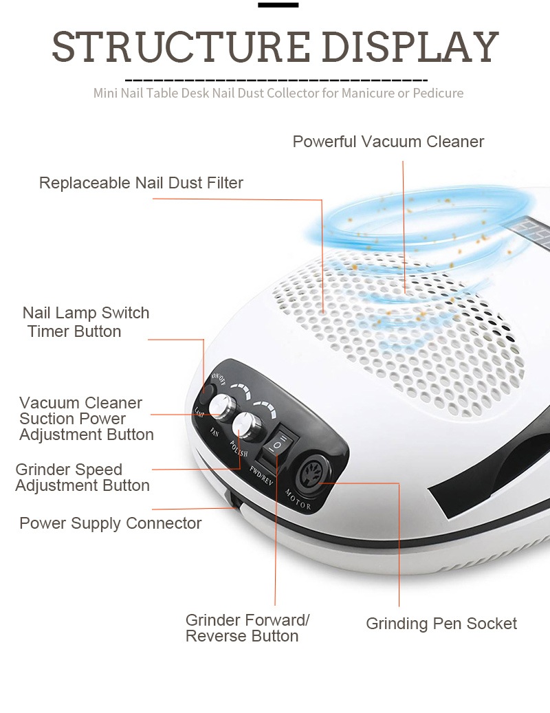 Trijų derinių rankinė nagų lempa su pagalve užtikrina tolygų klijų džiūvimą be susitraukimo. Dvigubi šviesos šaltiniai švelniai šildo, kad nepakeistų rankų spalva ir nepatemptų akys, tinka tiek rankoms, tiek kojoms, o tai užtikrina nepaprastai greitą džiūvimą.