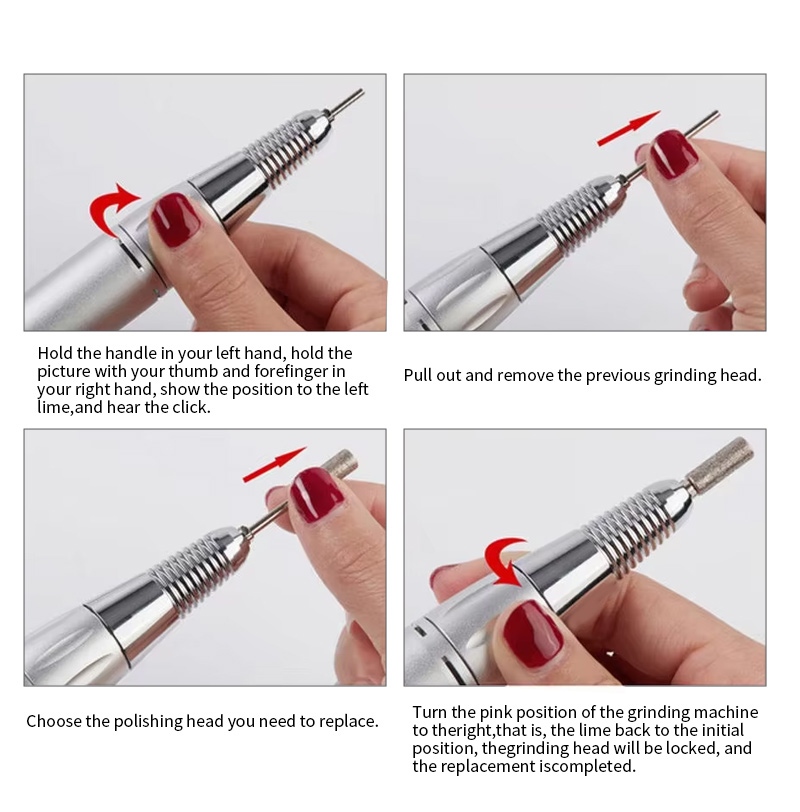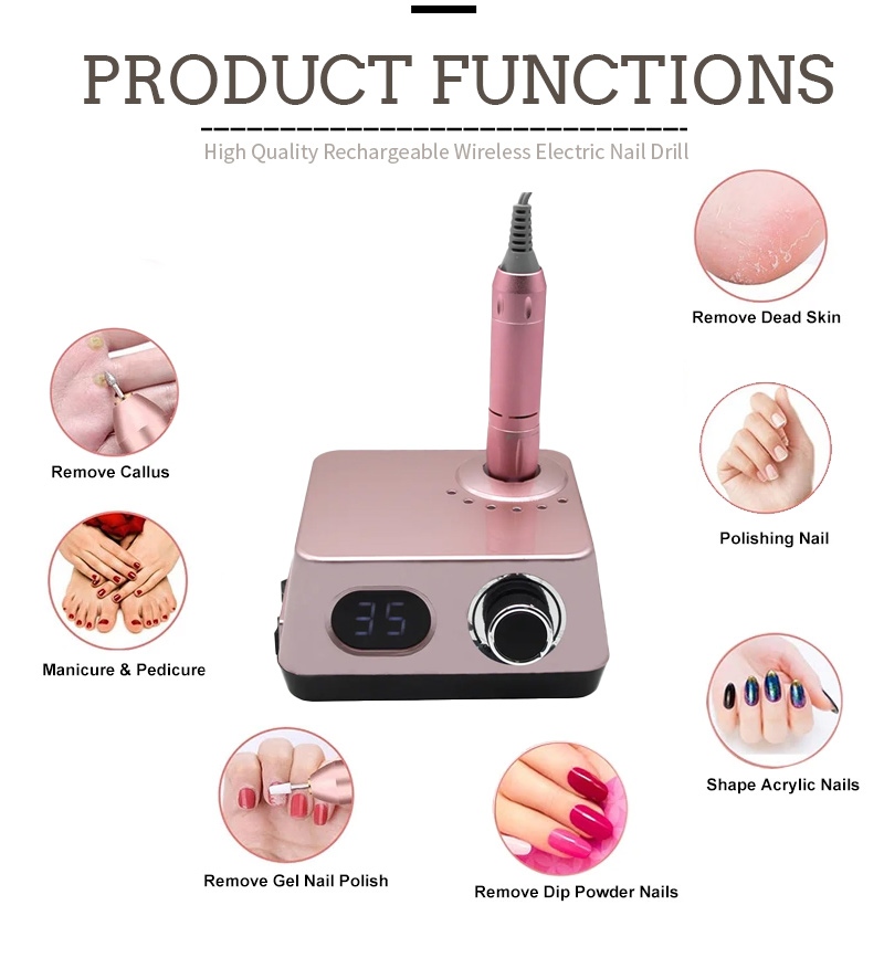 Šis belaidis elektrinis nagų gręžtuvas su 35 000 aps./min pakeitimo gręžimo metodu, tai yra, prijunkite ir ištraukite, lengvas ir patogus, keitimas gali būti naudojamas baigus.