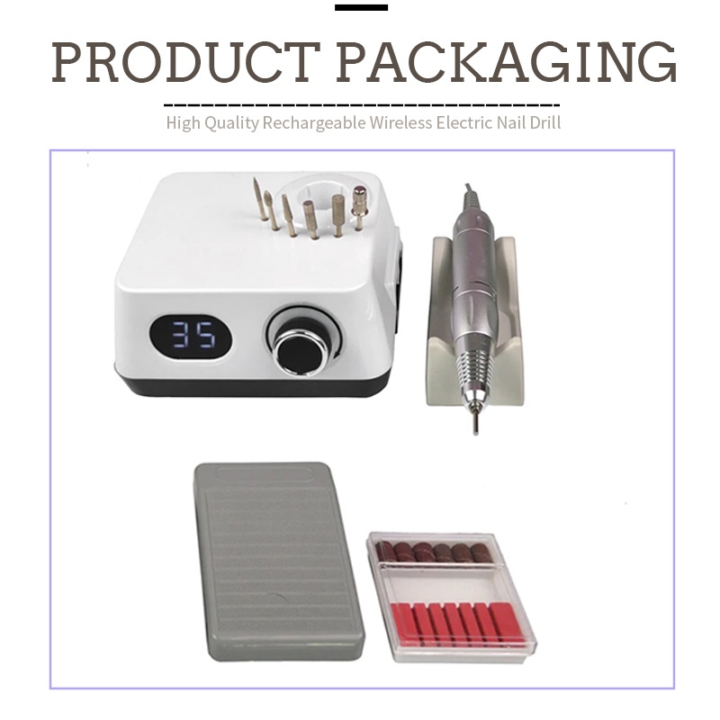 | Belaidis elektrinis nagų gręžtuvas su 35 000 RPM detalėmis |